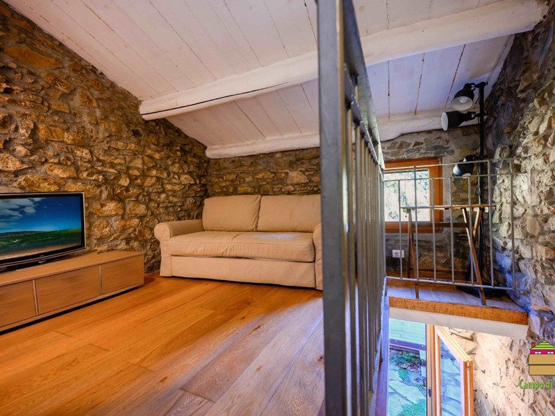 Ecco, penso che, arrivati fin qui, capirete, senza tante altre parole, che comprare un casale in pietra indipendente in questo posticino meraviglioso vuol dire "abbracciare" il mare, con in profili lontani delle isole Palmaria e Tino e dall’altra parte, nelle terse giornate invernali, persino la Corsica, la Gorgona e la Capraia. All'esterno dell'immobile troviamo un pergolato e una terrazza sospesa sul mare per pranzi e cene all'aperto e un giardino pianeggiante con varie piante aromatiche (basilico, prezzemolo, salvia e zafferano), ulivi e alberi da frutta (cedrine, mandarini, limoni, fichi, aranci, ciliegi, mandorli, gelsi, peri e albicocchi). Internamente il casale è stato "magistralmente" ristrutturato nel 2016 da un abile Architetto che ha saputo trasformare una casetta contadina in una comoda residenza per le vostre vacanze ed è composto al piano terra da un salone e cucina abitabile (completa di lavatrice) con vista mare e con accesso diretto all'esterno e da due camere matrimoniali sempre con vista mare (una con divano letto e comodo armadio su misura) e bagno con doccia al primo piano. Piccolo vano esterno utilizzato come ripostiglio al piano giardino. Il riscaldamento è tramite stufa a pallet incastonata in una parete in pietra con sistema ad aria per riscaldare le stanze del piano superiore. Non resta che fissare un appuntamento con Anna per visitare questo luogo "di sogno" e questo casale meraviglioso!