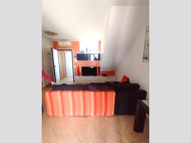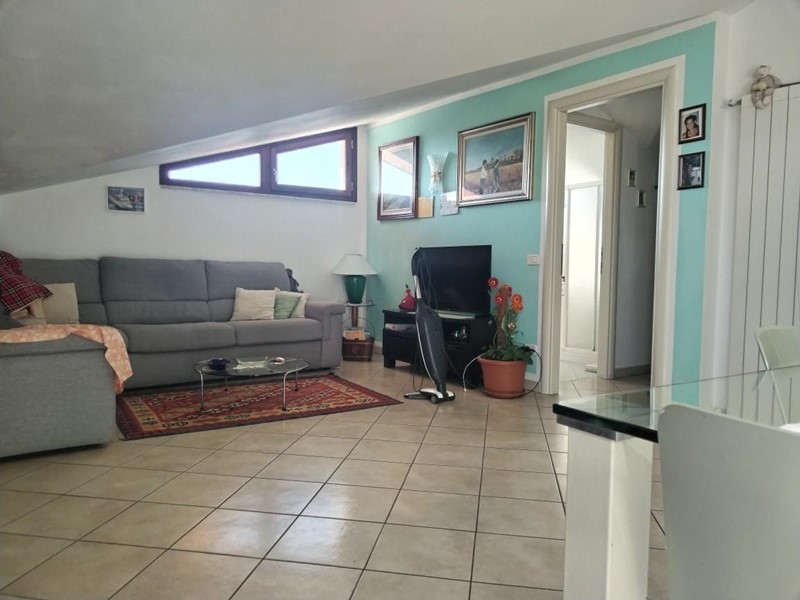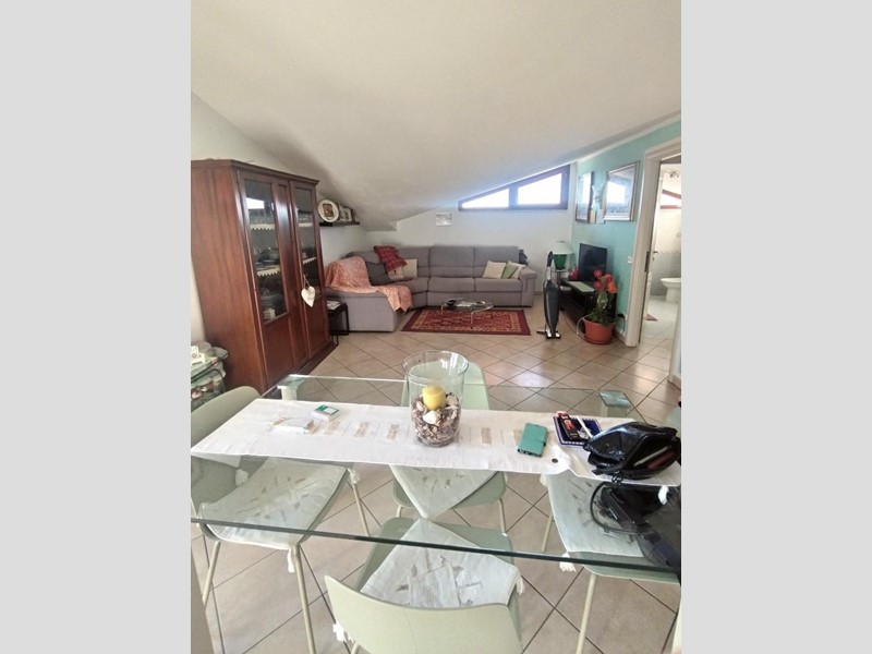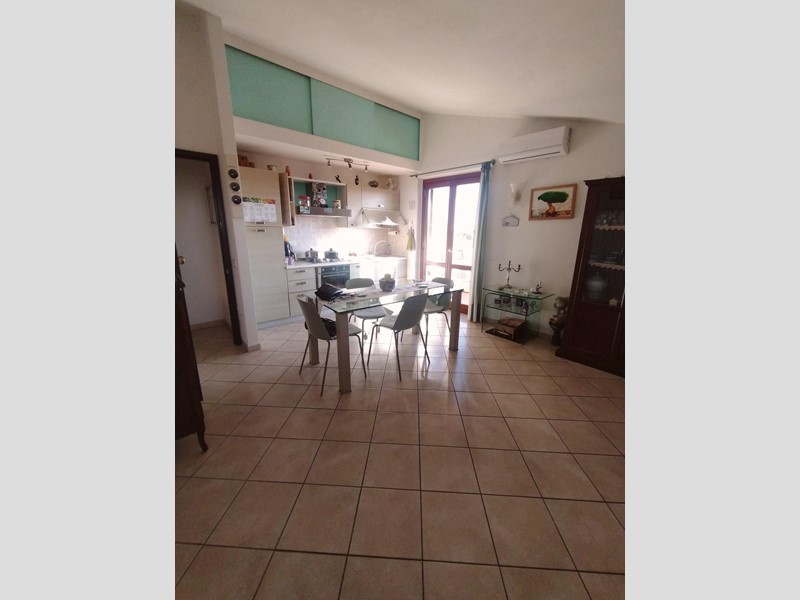 L' appartamento é dotato di ingresso pedonale indipendente e con un'elegante scala si raggiunge l'alloggio che si compone di ingresso su disimpegno finestrato che funge da bussola per i due piani. Al primo piano abbiamo soggiorno, cucina abitabile servita da balcone pranzabile, con lavatoio ed angolo lavanderia, camera matrimoniale, camera singola e bagno rivestito a mosaico con box doccia e sanitari sospesi. Introdotto da una scala e da un portone blindato, il secondo livello, mansardato, ma con un'ottima superficie calpestabile, è composto da ingresso su ampio soggiorno con cucina a vista ed affaccio su balcone, disimpegno, camera matrimoniale con balcone a servizio, bagno finestrato con doccia ed infine Ripostiglio/Lavanderia.
