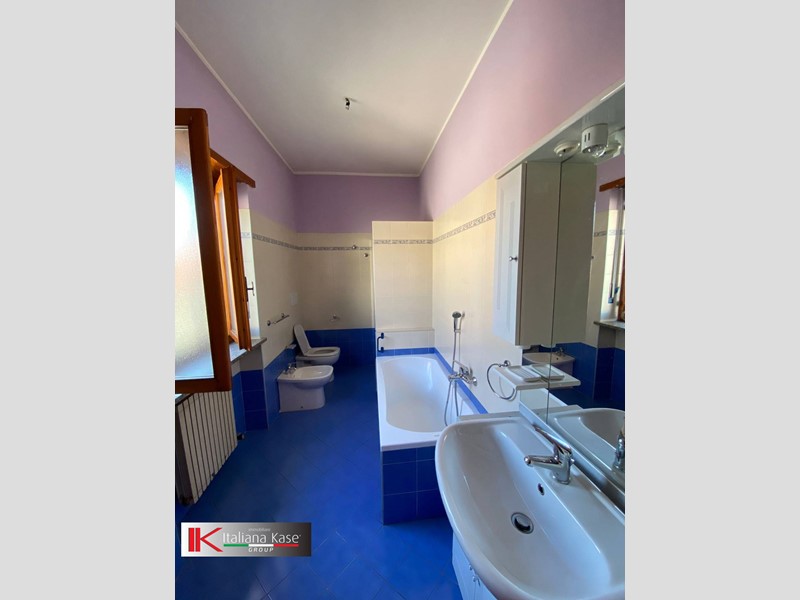 L' ingresso è su sala, la cucina è abitabile, tramite il disimpegno si accede alla zona notte dove ci sono due camere da letto, e bagno con doccia e con vasca. Sottotetto utlizzabile come magazzino.