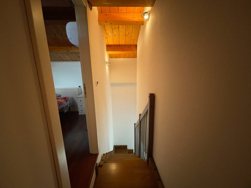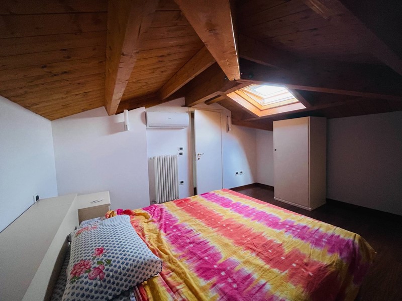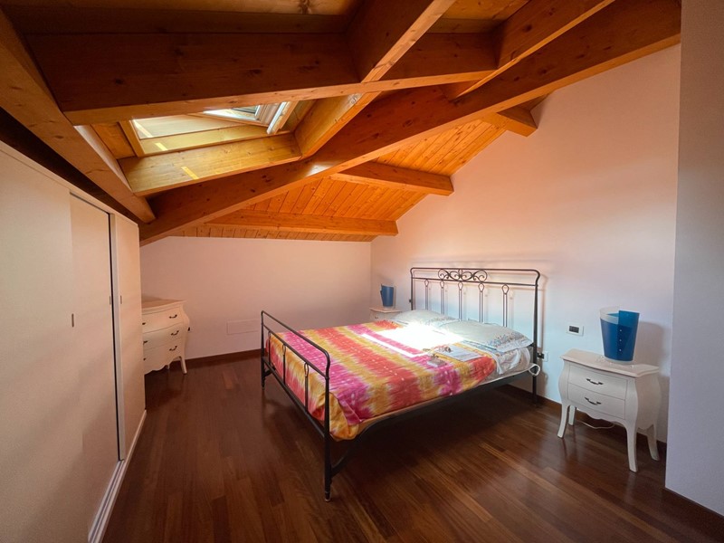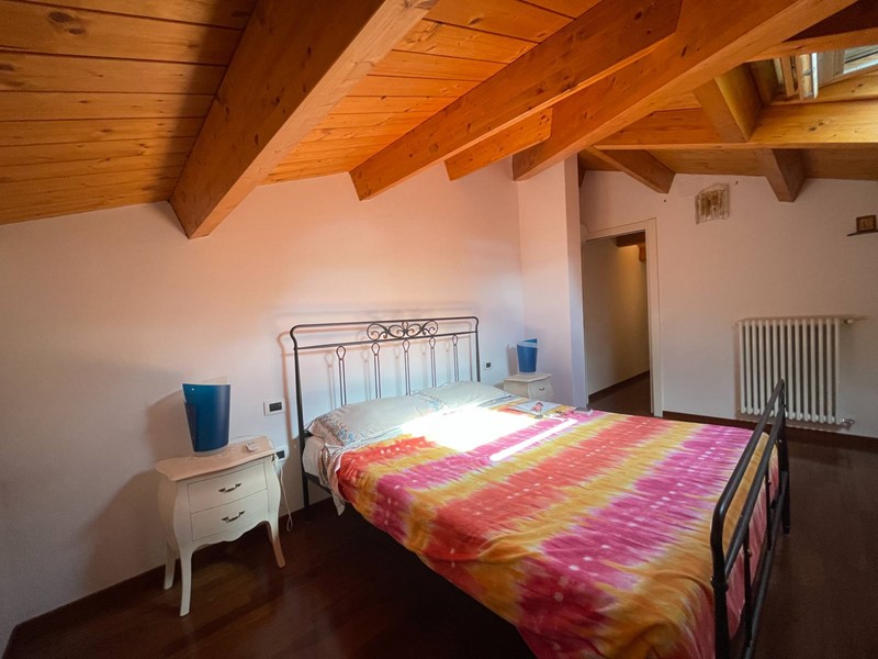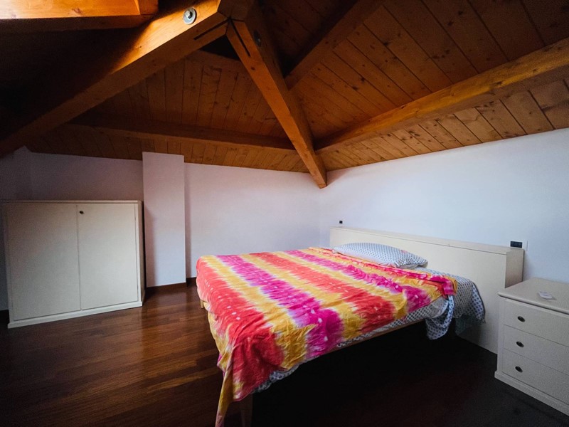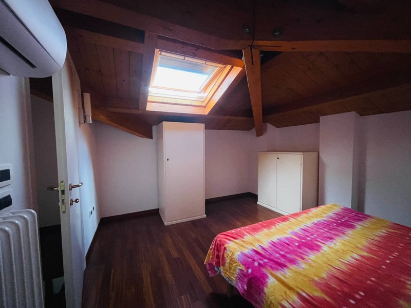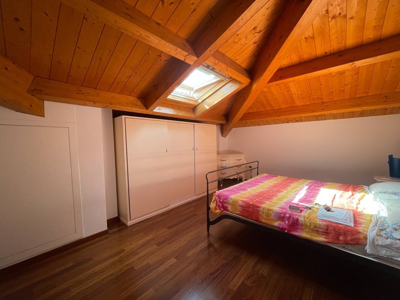 La residenza ha una superficie complessiva di circa 120 mq., sviluppati su due livelli (piano primo e mansarda): tramite una scala comune si sale al primo piano dove troviamo l'ingresso dell'appartamento composto da un ampio e luminoso soggiorno con cucina a vista in parte separata e volendo anche divisibile; sempre allo stesso livello troviamo un piccolo ripostiglio, un bagno con anti-bagno; tramite una comoda scala in ferro e legno si sale al secondo livello in cui è presente la zona notte composta da due locali adibiti a comode camere matrimoniali e un bagno. Tutti gli ambienti del secondo livello presentano soffitti in legno con travi a vista, illuminati e arieggiati tramite lucernari (Velux) elettrici.