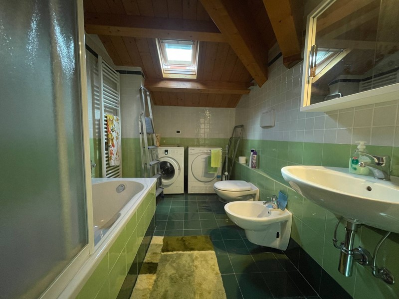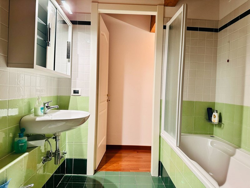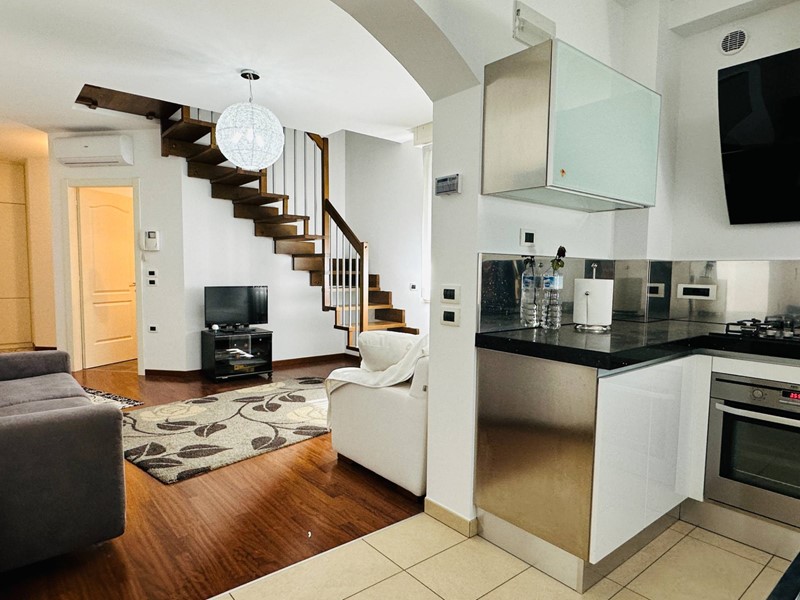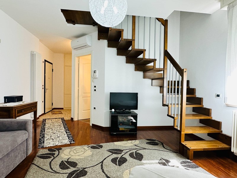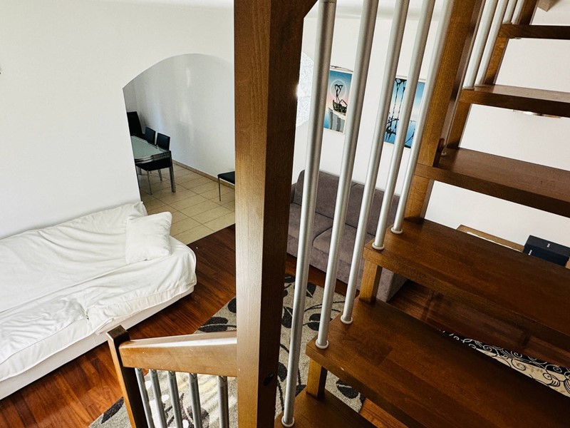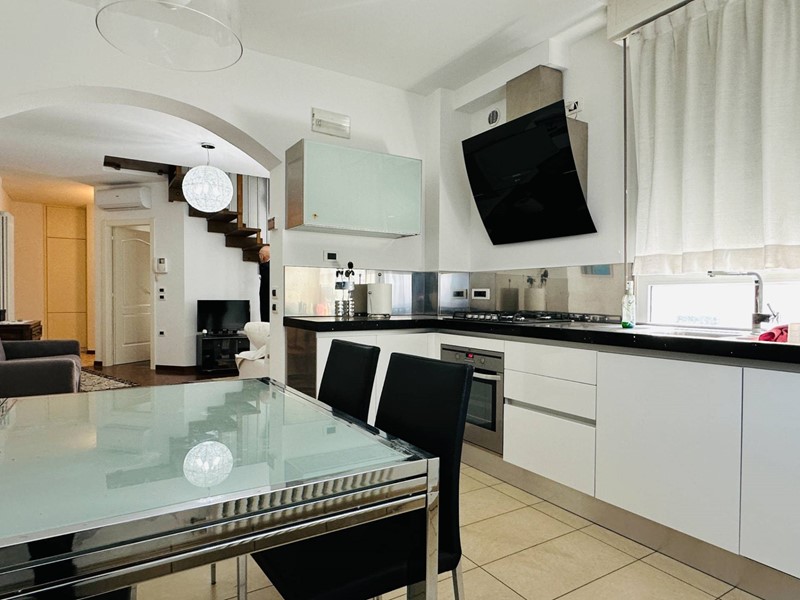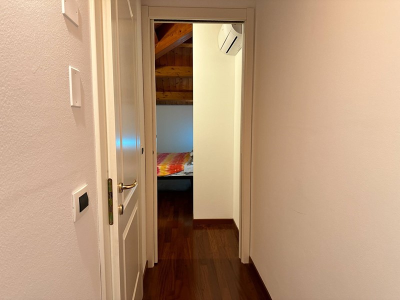 La residenza ha una superficie complessiva di circa 120 mq., sviluppati su due livelli (piano primo e mansarda): tramite una scala comune si sale al primo piano dove troviamo l'ingresso dell'appartamento composto da un ampio e luminoso soggiorno con cucina a vista in parte separata e volendo anche divisibile; sempre allo stesso livello troviamo un piccolo ripostiglio, un bagno con anti-bagno; tramite una comoda scala in ferro e legno si sale al secondo livello in cui è presente la zona notte composta da due locali adibiti a comode camere matrimoniali e un bagno. Tutti gli ambienti del secondo livello presentano soffitti in legno con travi a vista, illuminati e arieggiati tramite lucernari (Velux) elettrici.