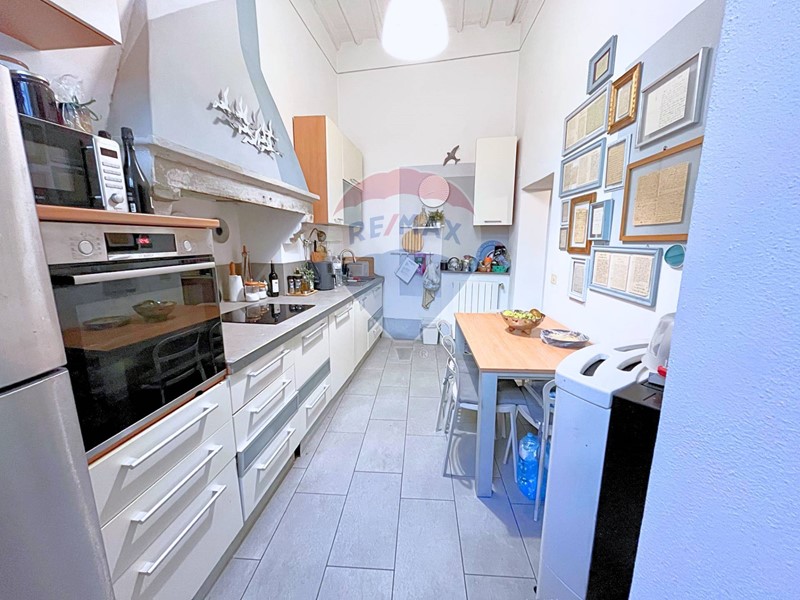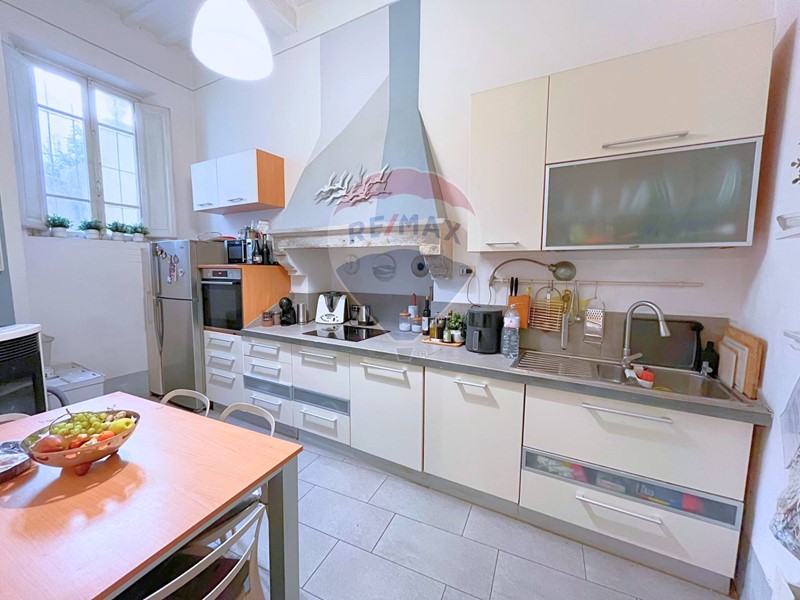 Lultima zona presente nel corridoio è una CUCINA SEPARATA, dotata di TAVOLO PRANZO. La cucina è FINESTRATA e impreziosita da una CAPPA IN MURATURA DEPOCA, vero simbolo di CONTINUITÀ TRA PASSATO E PRESENTE.