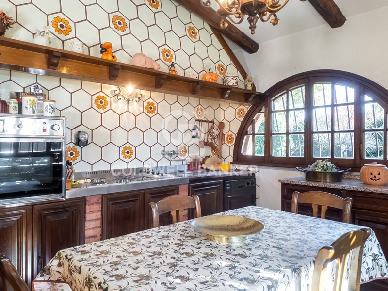 La cucina funzionale e luminosa, si apre sul patio coperto, uno spazio perfetto per pranzi allaperto o momenti di relax immersi nella natura. A completare il piano, un bagno, locali tecnici e di servizio ben distribuiti garantiscono praticità e ordine.