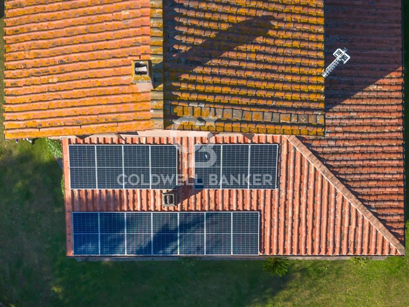 La villa è dotata di pannelli solari per la produzione di acqua calda e per il riscaldamento, un plus che unisce comfort abitativo e attenzione all'efficienza energetica.