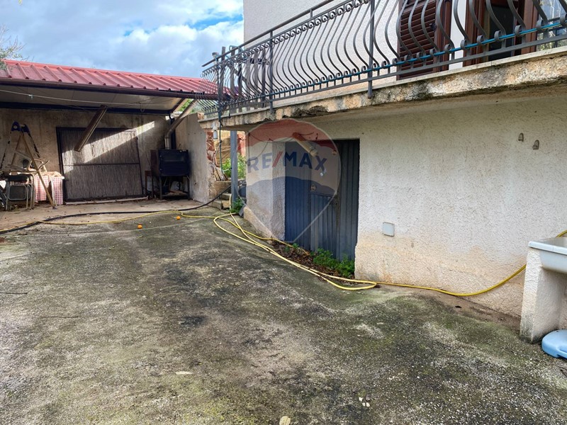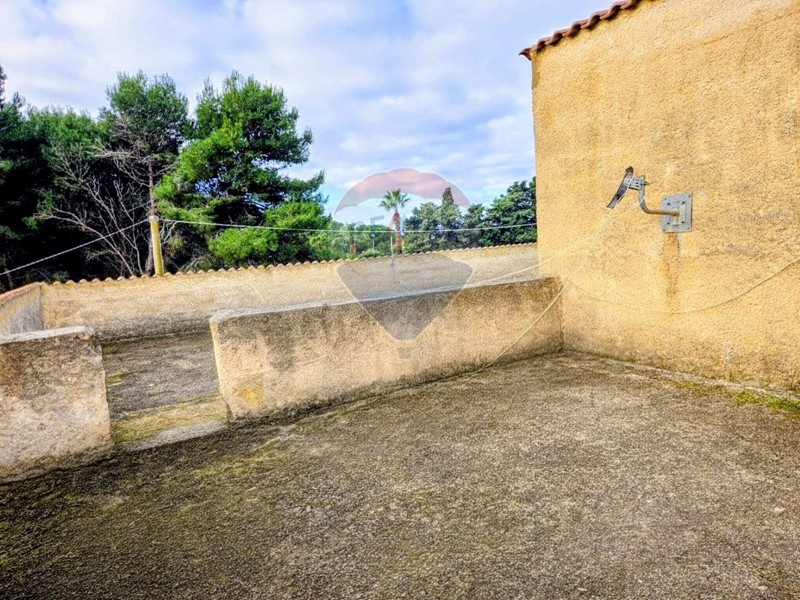 La proprietà è circondata da un ampio giardino di 500 mq circa con alberi di mandarino, limoni e altri alberi da frutto , completa la proprietà un'ampia terrazza sovrastante che offre una vista sulla campagna circostante.