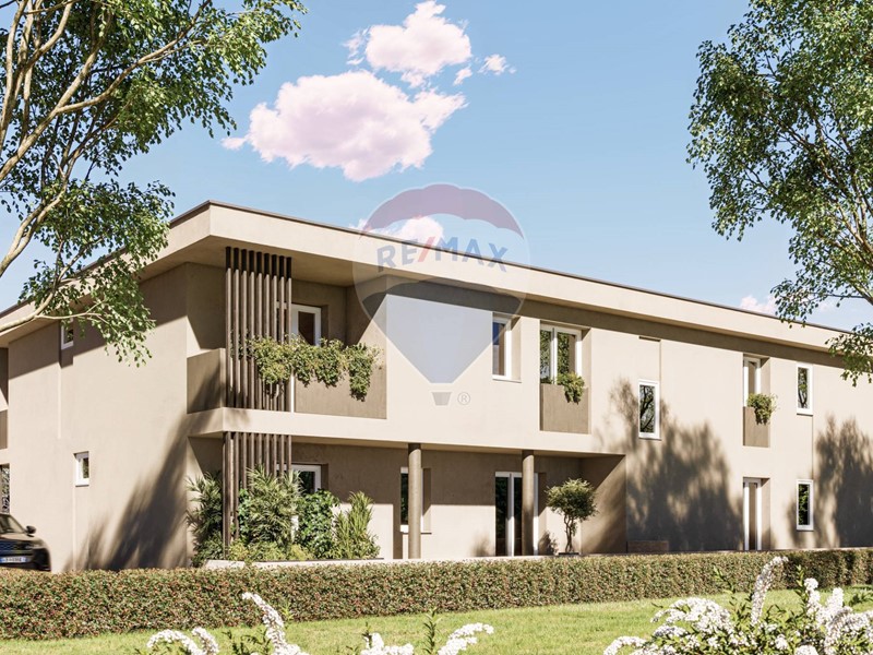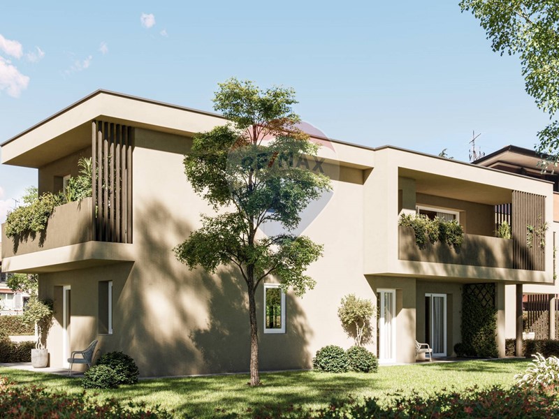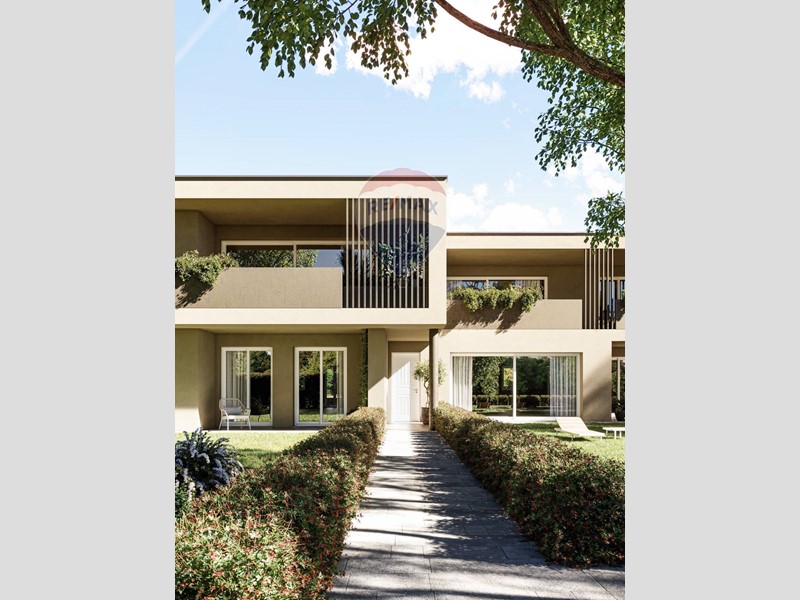 Appartamento composto da ingresso, soggiorno con un ampia porta finestra e cucina a vista, portico da 19 mq, due bagni finestrati e tre camere da letto oltre a 125 mq di giardino su due lati.