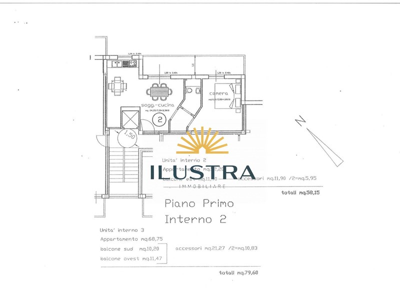 - Appartamento trilocale 80 mq commerciali, 69 mq calpestabili, balcone sud 10 mq, balcone ovest 11,5 mq. Prezzo 145.000