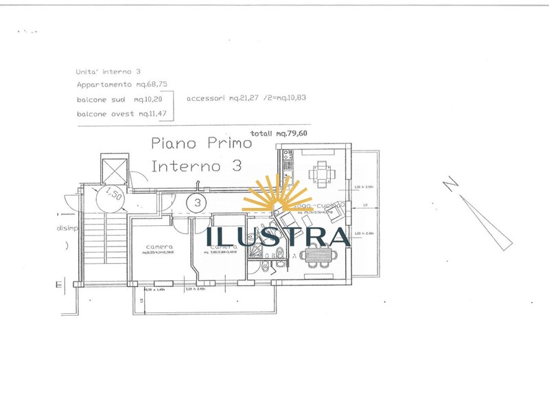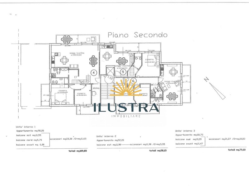 - Appartamento trilocale 110 mq commerciali, 98 mq calpestabili, balcone est 11.5 mq, balcone nord 5,75 mq, balcone ovest 6 mq, Prezzo 240.000