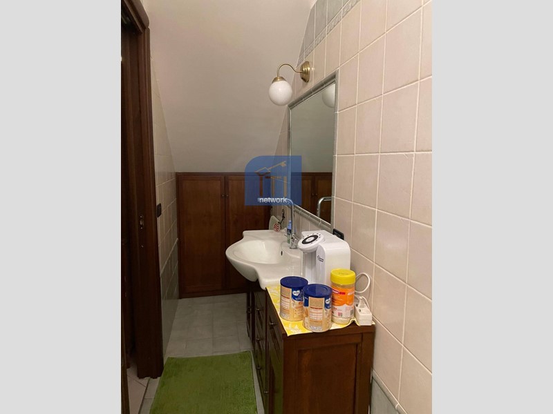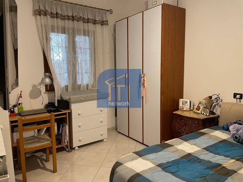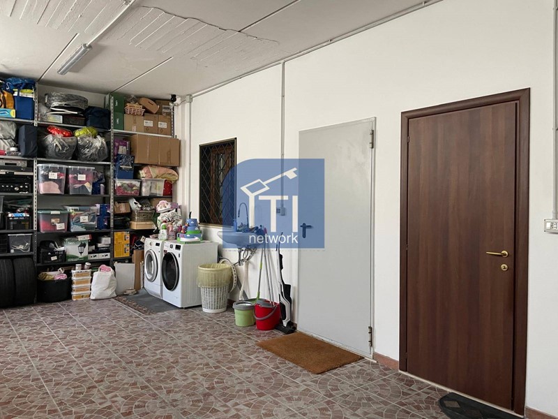 Il piano sottostante è suddiviso in camera matrimoniale e cameretta finestrati, servizio con box doccia, anch'esso con finestra e accesso al box auto con ripostiglio annesso.