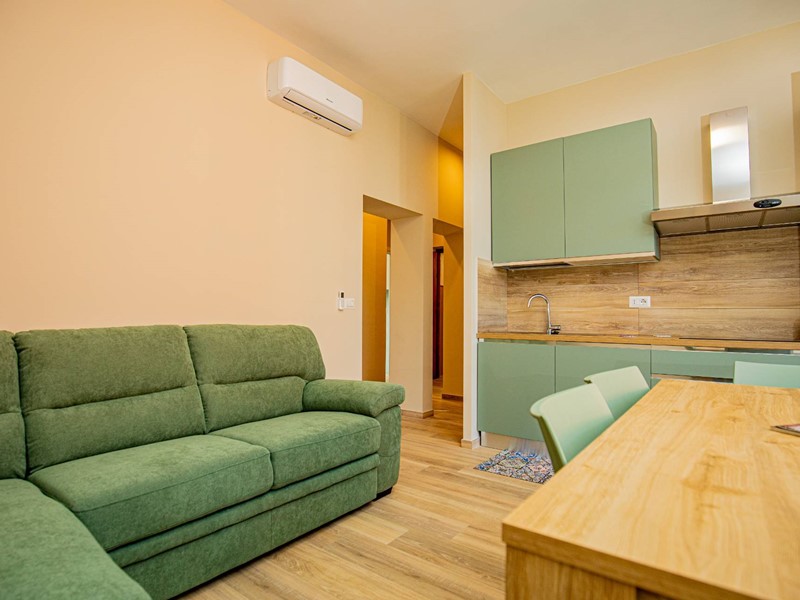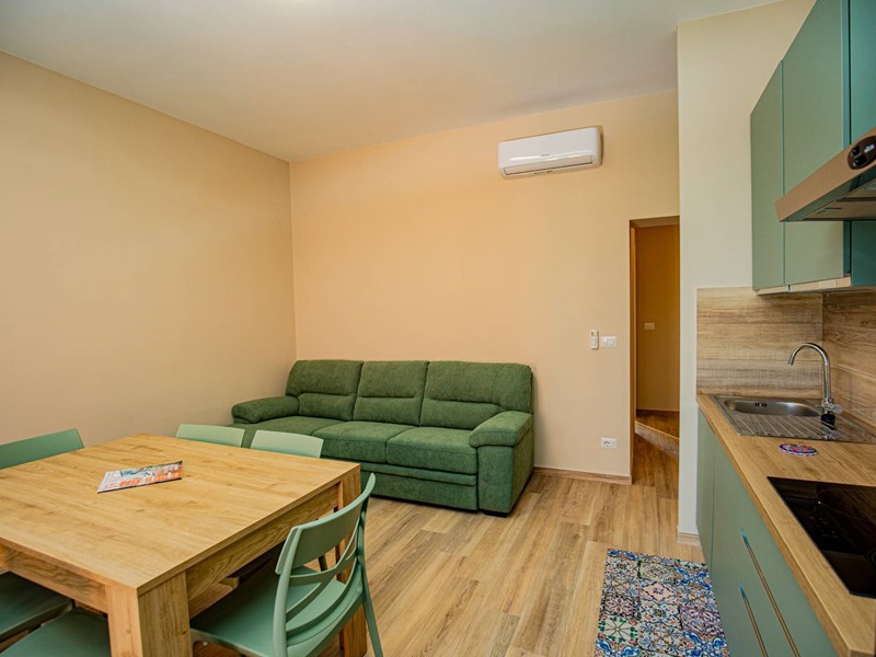 L'appartamento è completamente arredato, rendendo questa soluzione perfetta per chi desidera trasferirsi senza preoccupazioni. La cucina è dotata di un pratico angolo cottura, perfetto per preparare deliziosi pasti mentre si gode della vista dal balcone presente nella zona giorno.