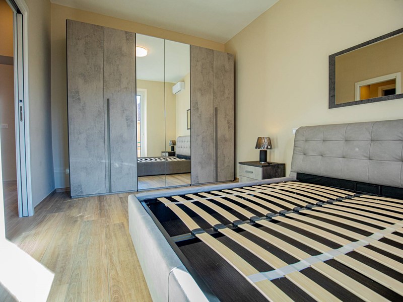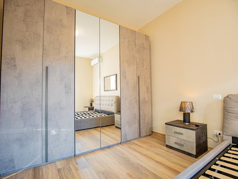 Gli interni, composto da 3 locali, sono ben distribuiti e dotati di ogni comfort. L'appartamento dispone di 2 camere da letto, di cui una con balcone, e 2 bagni di cui uno in una camera, perfetto per ospitare una famiglia o per chi desidera una soluzione spaziosa, e un ripostiglio/lavanderia.