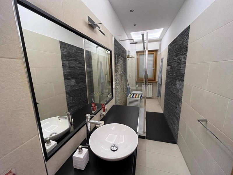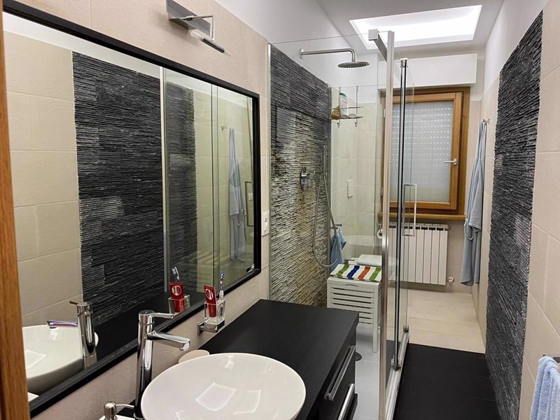 L'appartamento è completamente ristrutturato, dotato di impianti a norma, infissi in doppio vetro taglio termico, serrande elettriche, grate di sicurezza e aria condizionata negli ambienti, la pavimentazione e porte nuove, porta blindata con serratura europea. Riscaldamento autonomo.