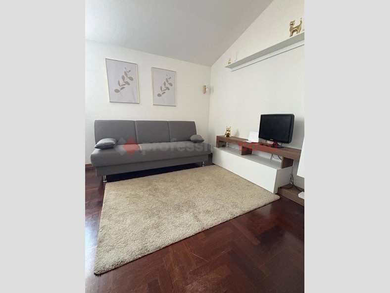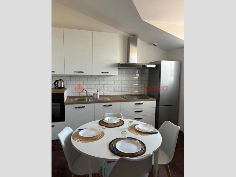 L'ingresso conduce direttamente alla zona giorno, un ambiente accogliente che unisce il soggiorno alla cucina a vista, creando uno spazio funzionale e ben organizzato, arricchito dalla presenza di un comodo ripostiglio, utile come dispensa o per ottimizzare la gestione della casa.