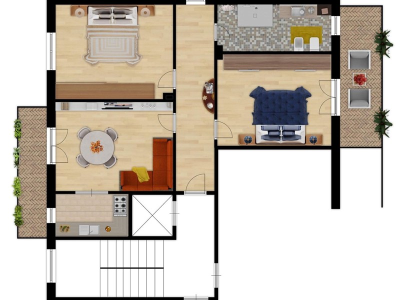 Posto al secondo piano con ascensore e privo di barriere architettoniche, si presenta in splendide condizioni generali ed è composto da ampio ingresso, cucinino, soggiorno con sfogo su balcone a tutta lunghezza, due ampie camere matrimoniali, bagno con doccia recentemente ristrutturato ed ampio terrazzino coperto.