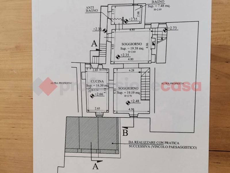A Palazzo del Pero, appartamento da finire di 240 mq. composto da ingresso indipendente su 3 ampie stanze di 60 mq totali da adibire a taverna o cantina oltre servizio. Al livello superiore si trova un soppalco ben rifinito con cucina abitabile e due ampi soggiorni di 40 mq totali oltre bagno e antibagno. Al secondo livello si trovano due camere matrimoniali con un servizio. L'immobile è dotato di riscaldamento autonomo e grande spazio di proprietà per parcheggiare 3/4 auto con possibilità di creare una tettoia come copertura. L'immobile è inoltre dotato di un terreno molto vasto separato dall'immobile da una strada di passo che collega l'immobile al terreno. L'immobile deve essere ultimato. RIF. VQ249