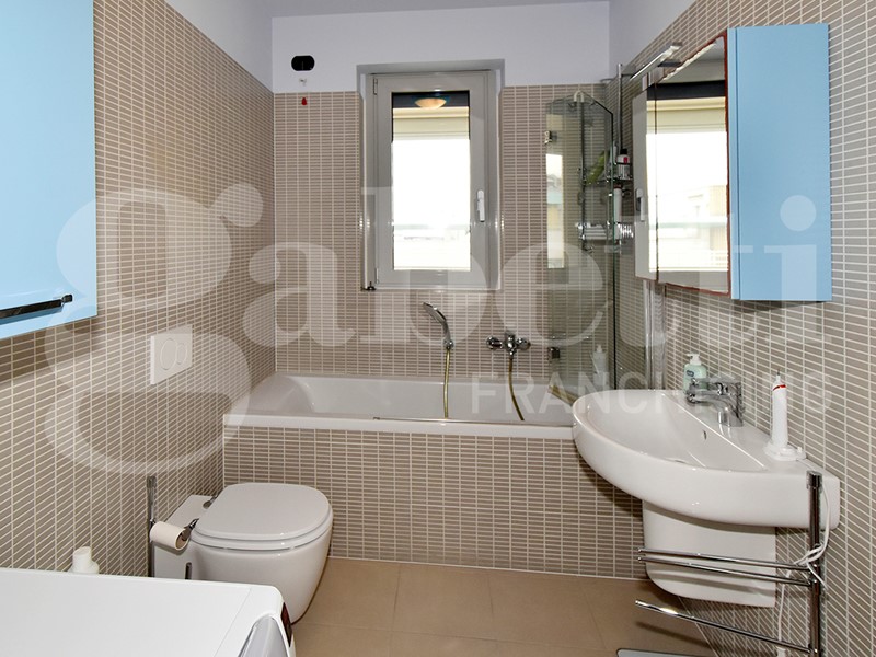 parquet in tutta la casa (tranne bagno in ceramica), infissi in PVC di ultima generazione con triplo vetro, tapparelle elettriche, zanzariere, porta blindata e videocitofono.
