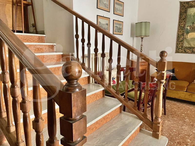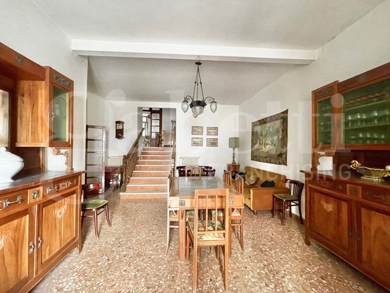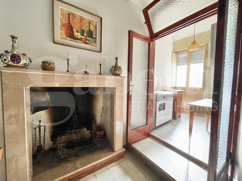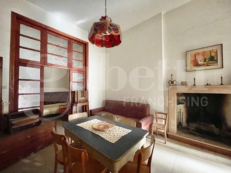La zona giorno è composta da un doppio salone, un soggiorno accogliente, una cucina abitabile con camino in muratura, perfetta per vivere la casa in modo autentico e conviviale.