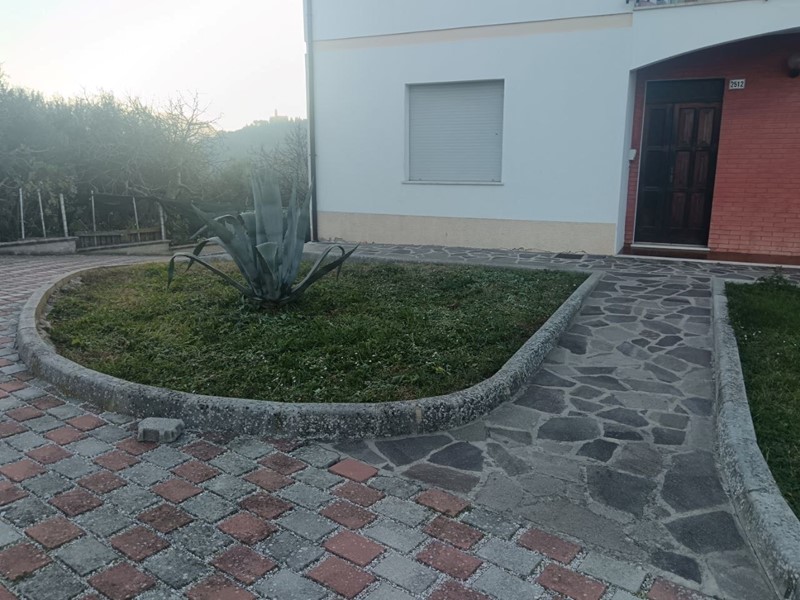 MONTEFIORE CONCA - SERRA DI SOTTO : Porzione di bifamiliare al piano terra di 110 mq con ingresso indipendente e ampio giardino di circa 400 mq carrabile. Ingresso con soggiorno e cucina abitabile e cucinotto, disimpegno notte con 3 camere da letto di cui 2 matrimoniali e una singola. Un bagno. Balcone perimetrale e panoramico di 9 mq. Al piano seminterrato dispone di ampio garage di 56 mq. Annesso alla proprietà c'è un terreno di circa 800 mq con degli ulivi. L'immobile non ha spese di condominio in quanto sono 2 unità in totale. E' stato costruito a metà degli anni '70. Manca la caldaia e gli elementi per il riscaldamento ma sono già è presenti le tubazioni in tutta la casa. L'immobile non è abitato pertanto è libero da subito. Per maggiori informazioni o per fissare un appuntamento di visita contattare il numero 0541-858082 Agenzia Che-Casa! Morciano Di Romagna.