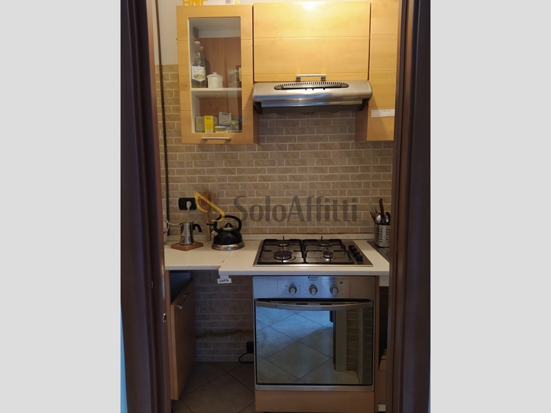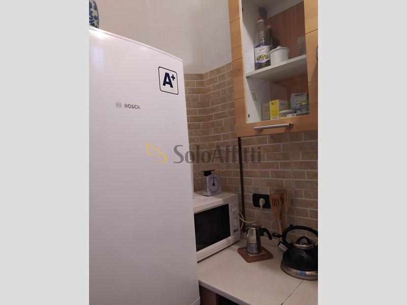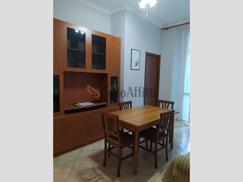 Entrando si accede a un piccolo disimpegno: sulla sinistra si trova il bagno con doccia, mentre proseguendo si apre il soggiorno arredato con tavolo e divano-letto, collegato al cucinotto separato. La zona notte comprende una camera con letto a una piazza e mezza e una seconda camera con due letti singoli e due scrivanie, ideale per studenti o lavoratori.