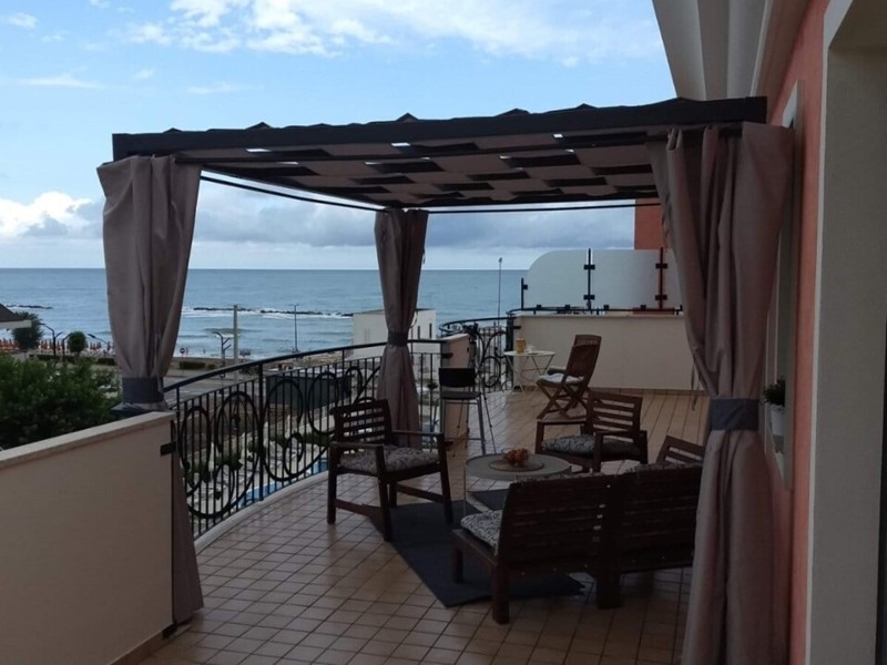 MARTINSICURO - in zona servita a circa 25 metri dal mare, appartamento di circa 60 mq coperti al terzo piano servito da ascensore. E' composto da ingresso su soggiorno con angolo cottura, una camera matrimoniale, una camera singola, un bagno finestrato con doccia ed un terrazzo di circa 70 mq con vista mare. Completa la proprietà un garage al piano interrato di circa 15 mq. Vi è uno spazio verde condominiale recintato. L'immobile si presenta in ottime condizioni, ha infissi in legno con doppio vetro, portone blindato, aria condizionata, impianto di riscaldamento termoautonomo con elementi in alluminio, caldaia a condensazione, tende parasole, angolo lavanderia sul terrazzo. Arredamento incluso nel prezzo. Riferimento agenzia 6910 DiLeoImmobiliare