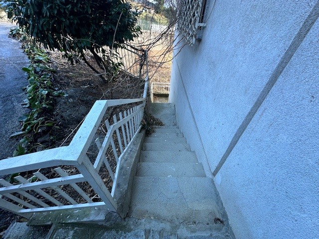 Nel complesso immobiliare denominato "Fonte del Faggio": porzione di fabbricato ad uso civile abitazione posta al piano seminterrato e costituita dalla fusione di fatto di due unità immobiliari così composta: ingresso su soggiorno, cucina, due camere, due locali ripostiglio, un bagno privo di sanitari, terrazzo e magazzino abusivo esterno di mq. 12; annesso e pertinenziale terreno agricolo adibito ad orto ed in parte a cortile della superficie di mq. 560