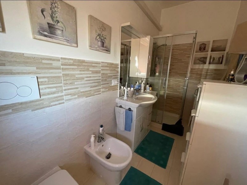 Cecina in posizione centralissima elegante attico con terrazza vista mare e vista campagna, luminosissimo, composto da un salone con vista, soggiorno con cucina, tre camere, di cui una con bagno privato, bagno principale, un ripostiglio/cantina e un grande garage, posto auto e ampio giardino condominiale