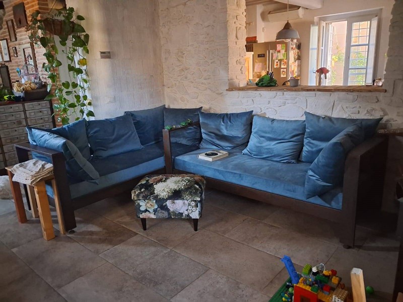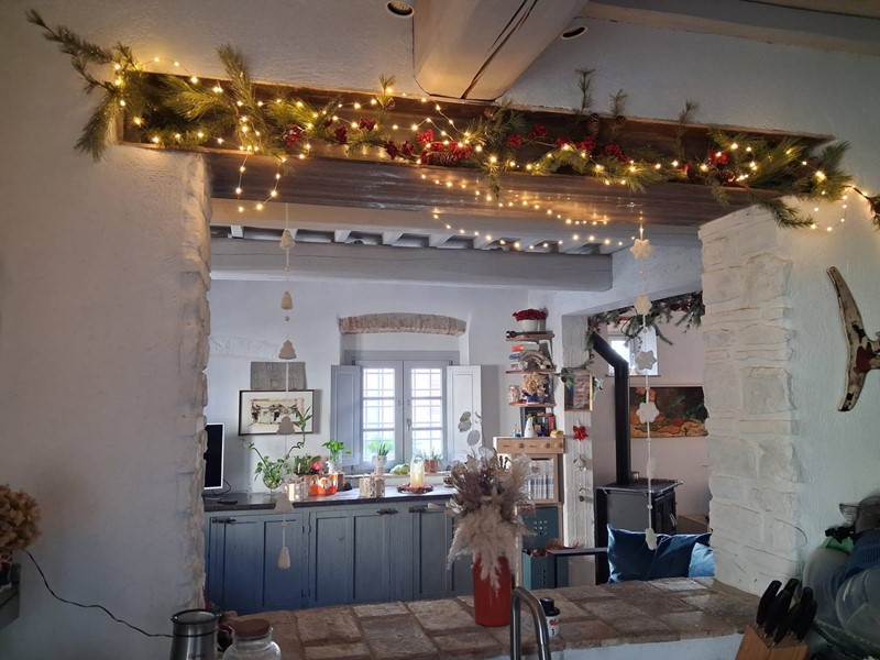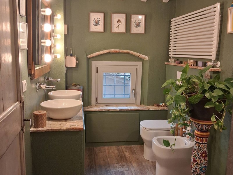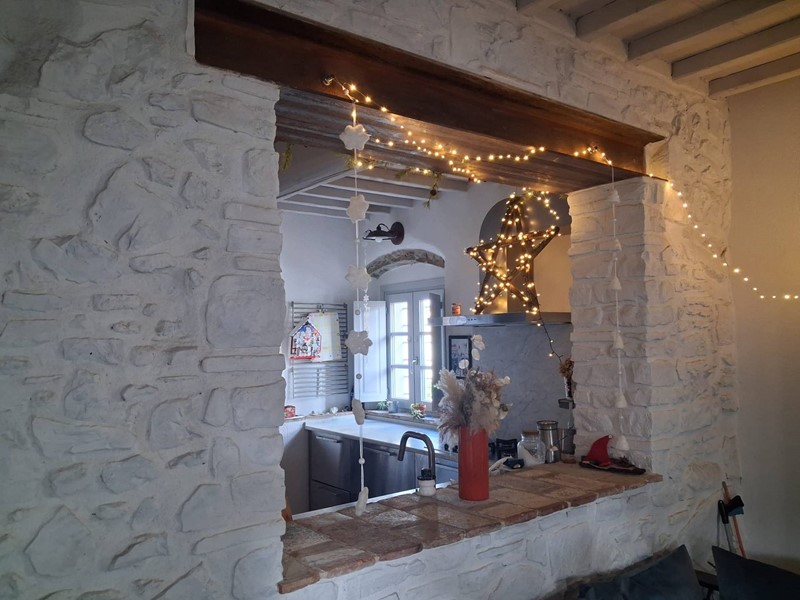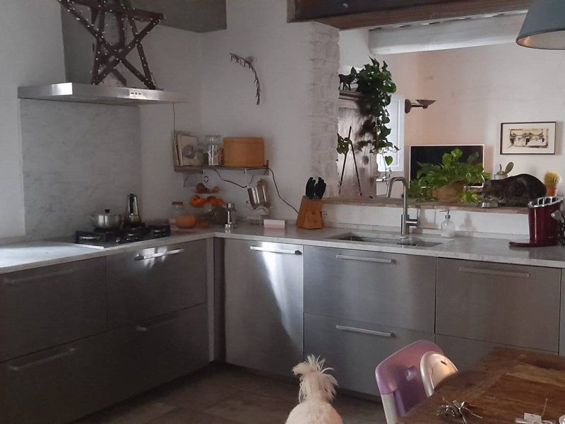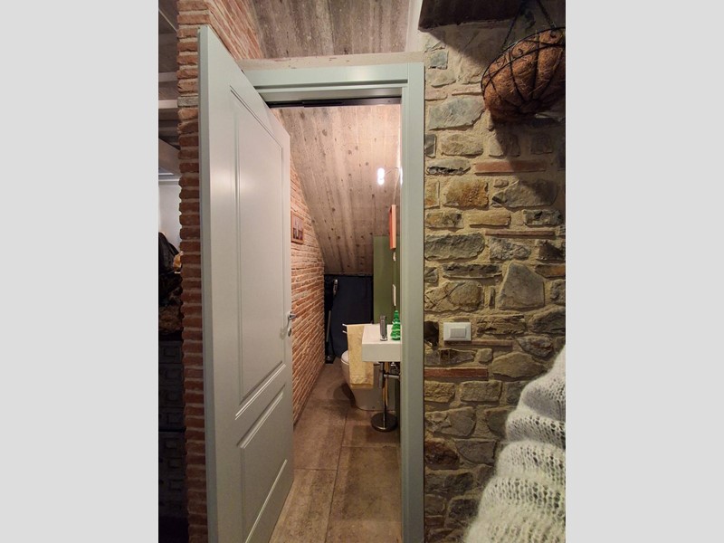 La disposizione interna è stata progettata per unattività ricettiva o famiglia numerosa. Al piano terra trovano spazio un ampio soggiorno, cucina e bagno sotto scala;