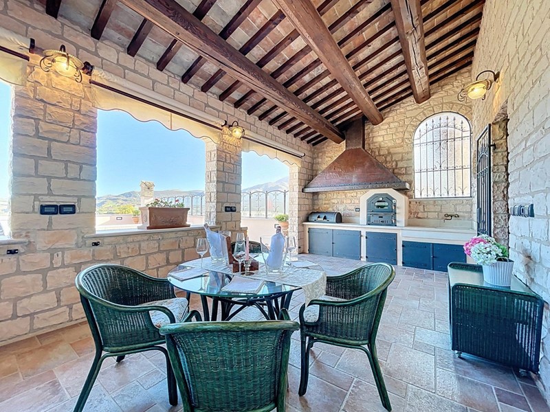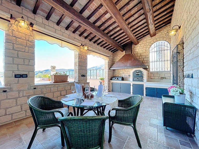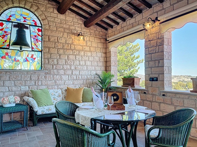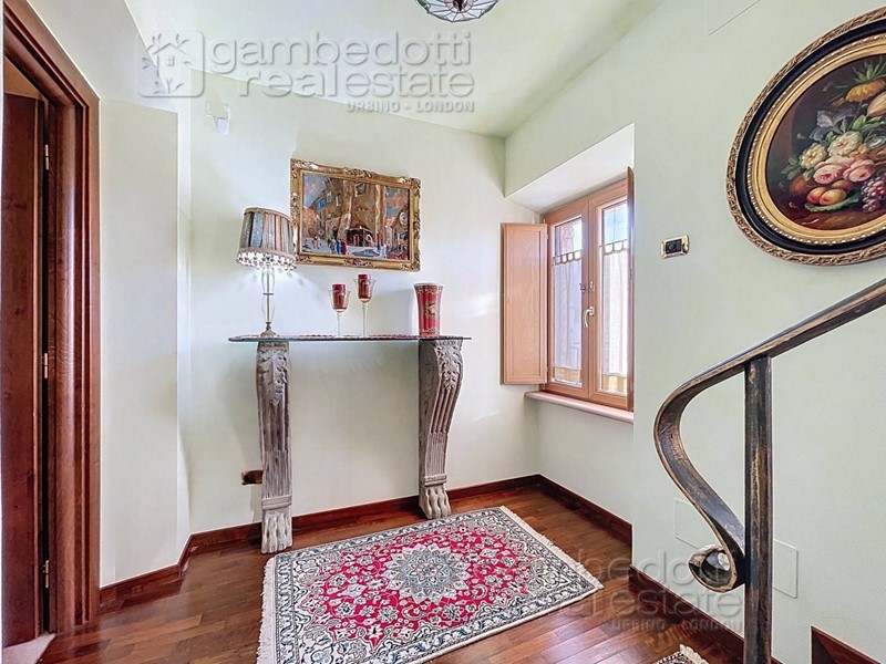 Avvolta da un paesaggio di rara bellezza e posizionata in un punto panoramico privilegiato, la proprietà regala viste incantevoli sul borgo e sul Castello di Frontone, diventando unoasi di eleganza e tranquillità.