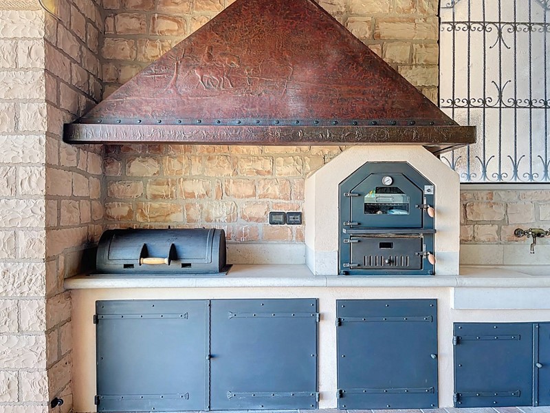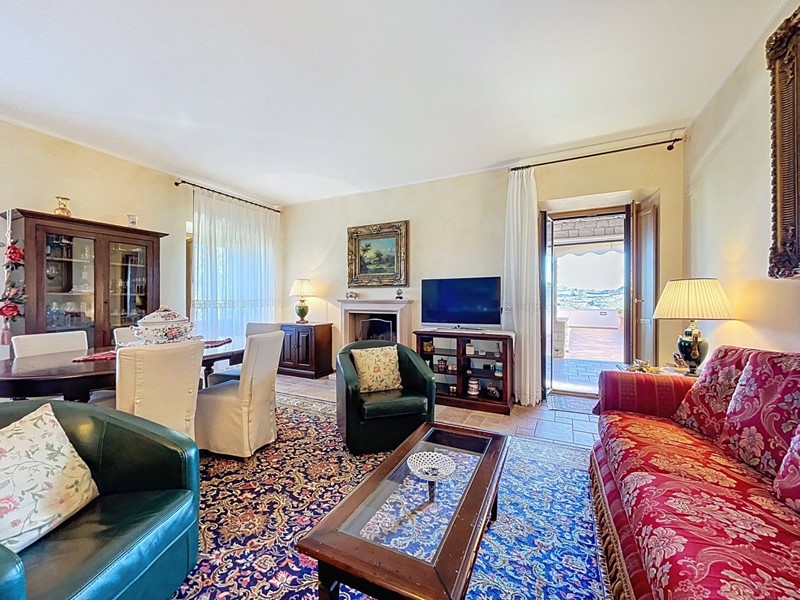 Al primo piano si trovano tre raffinate camere matrimoniali e due bagni, inclusa una suite con bagno privato. La cucina in muratura e il soggiorno del piano godono dellaccesso diretto a unelegante loggia coperta che conduce a una terrazza panoramica di 44 mq: un vero salotto allaperto sospeso sul paesaggio.