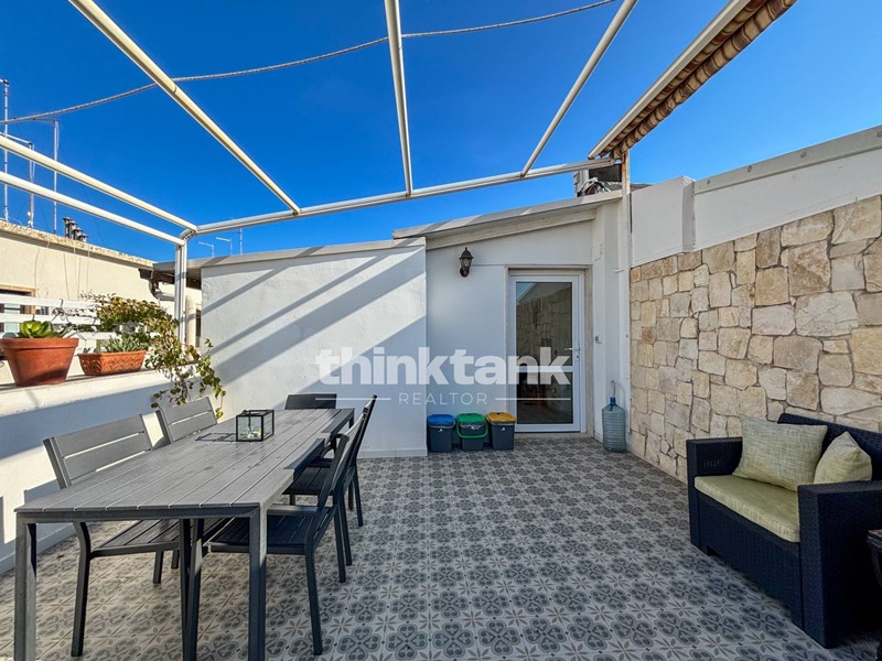 La terrazza è il fiore allocchiello della proprietà: uno spazio riservato, perfetto per chi ama tranquillità, privacy e soprattutto una suggestiva vista sui tetti della Borgata e su tutta la città di Siracusa. È lambiente ideale per cene allaperto, momenti di relax o per creare un piccolo angolo verde urbano.