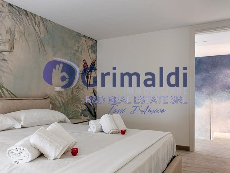 Salendo la scenografica scala a vetri, si raggiunge la zona notte, con un'ampia camera matrimoniale e il secondo bagno, dotato di un ampio piatto doccia doppio.