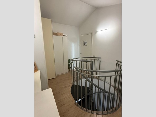 Gli interni offrono un elevato livello di comfort grazie alla presenza di riscaldamento a pavimento, sistema di domotica, aspirazione centralizzata e impianto di allarme. Il primo livello si apre su un luminoso open space che integra la zona giorno con la cucina, affiancato da un ripostiglio, un bagno con doccia e uno studio versatile, il tutto completato da un comodo terrazzo che illumina.