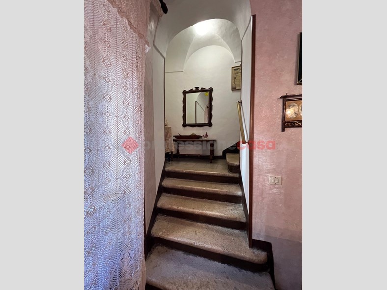 L'immobile su tre livelli mantiene le caratteristiche medievali del borgo. Un' importante scalinata esterna ci conduce al piano rialzato dove troviamo, oltre all'ingresso di rappresentanza, una cucina ed un'ampia taverna, accessibile anche attraverso un'entrata indipendente, una camera da letto ed un bagnetto di servizio.