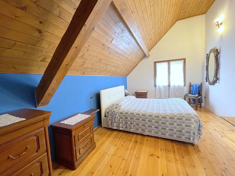 Villa singola in posizione dominante e soleggiata, la villa infatti sorge in cima ad una collinetta garantendo il massimo della privacy e del panorama circostante. Costruita nel 1973 su un lotto di circa 1000 mq su 3 piani fuori terra. Al piano terra ci sono tutti i vani accessori; box auto, una sala hobby, una cantina, una lavanderia con bagno completo e la centrale termica. La parte abitativa occupa i piani primo e secondo. L'ingresso principale si trova sul lato Sud tramite una scala esterna che conduce alla bussola d'entrata, al primo piano trova spazio un ampio soggiorno con cucina a vista e angolo bar, dal disimpegno si accede al bagno e a una camera. La zona notte si trova al piano mansardato dove ci sono 3 camere da letto e un bagno con doccia. La villa gode di una metratura generosa e grazie ai vani accessori e allo studio offre spazi extra anche per hobby o lo smart working.