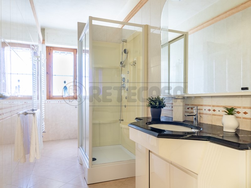 Il bagno con doccia, moderno e funzionale, completa un ambiente equilibrato e confortevole.