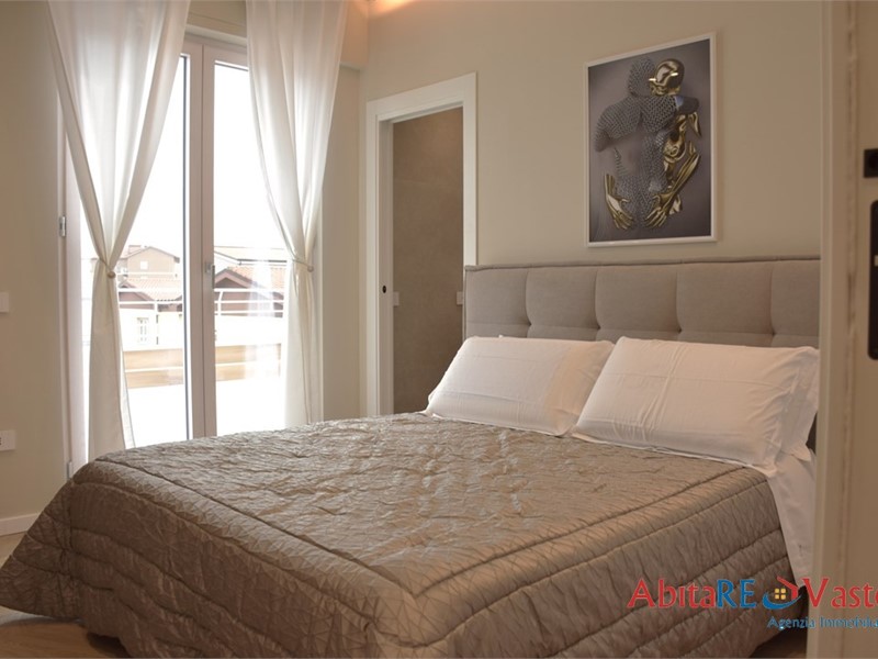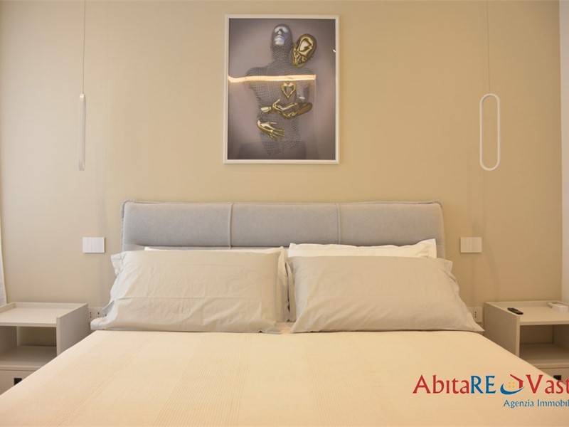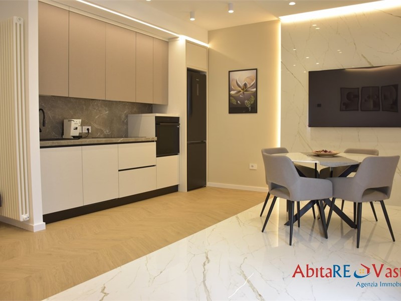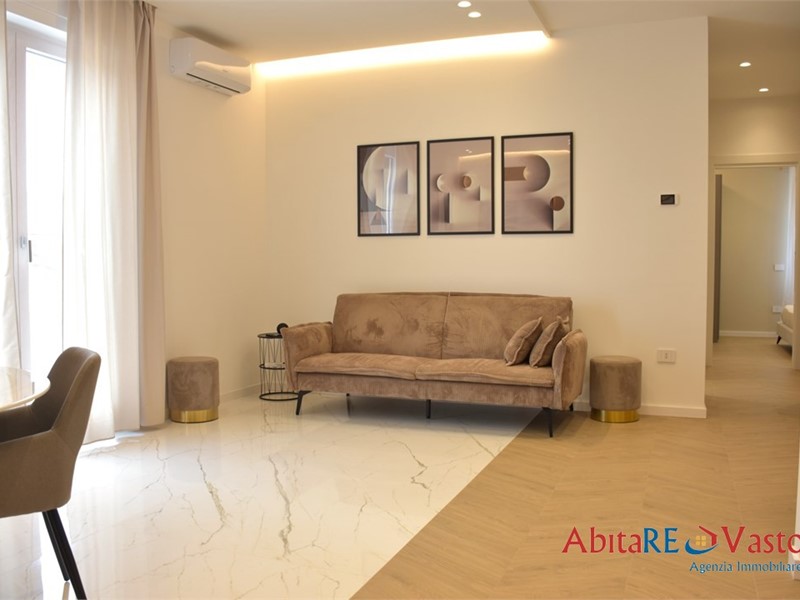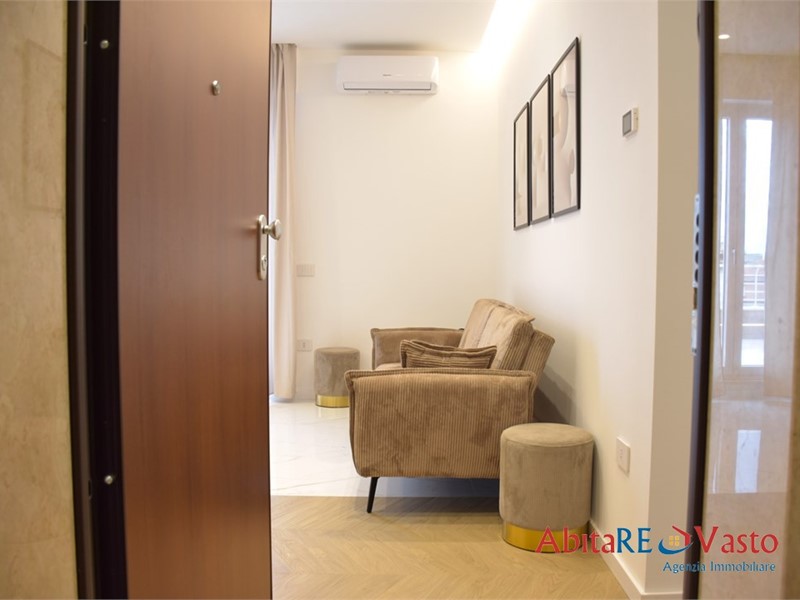 Nel cuore di Vasto, in una posizione strategica e ottimamente servita, a pochi passi dalla zona ospedaliera, proponiamo in locazione esclusiva un attico di nuova realizzazione che coniuga eleganza, comfort e qualità costruttiva.\nL'immobile è inserito all'interno di una piccola palazzina recentemente ristrutturata, contesto riservato e curato, ed è arredato con mobili di alto livello, scelti con attenzione al design e alla funzionalità. Gli spazi interni si distinguono per razionalità e luminosità: soggiorno con angolo cucina, disimpegno, 2 camere da letto matrimoniali, doppi servizi con doccia, di cui uno privato nella camera padronale. Elemento di assoluto pregio è il grande terrazzo/solarium, vero valore aggiunto della proprietà, ideale per momenti di relax e convivialità, completo di doccia esterna e perfettamente vivibile in ogni stagione. L'attico è dotato di comfort di livello superiore: climatizzazione in ogni ambiente, tapparelle elettriche, riscaldamento autonomo, pannelli solari e impianto di domotica di ultima generazione, a garanzia di efficienza, sicurezza e qualità della vita. Soluzione abitativa esclusiva e riservata, destinata a clientela referenziata, disponibile per contratti annuali o pluriennali. Non sono ammessi animali né contratti ad uso foresteria. La palazzina è priva di ascensore.\nUna proposta rara sul mercato, ideale per chi ricerca un'abitazione di rappresentanza, moderna e impeccabile, nel centro di Vasto. - Maggiori Dettagli: Videocitofono, Lavastoviglie, Porta blindata, Ripostiglio, Climatizzato, Rete ADSL, Doppio servizio