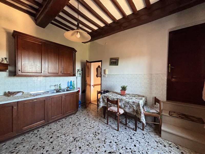 In una delle deliziose frazioni che si trovano a soli 2,8 km del comune di Terricciola, vi presentiamo questa porzione di un casale risalente al 1700 circa, con adiacente un grande cortile e un terreno di proprietà coltivato ad oliveta e alberi da frutto.