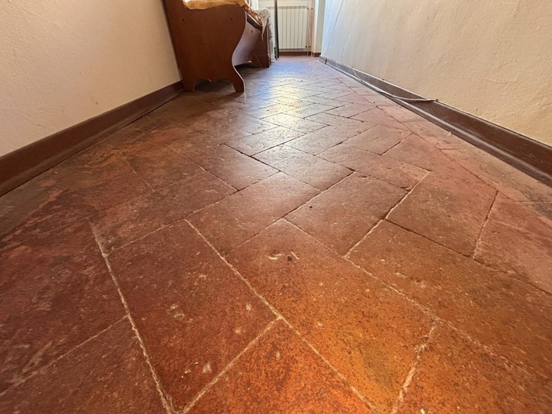 L’accesso alla proprietà si trova al piano terra e dopo aver salito alcuni gradini, al piano primo, troveremo alla nostra sinistra il disimpegno che mi conduce alla cucina abitabile e al soggiorno, alla nostra destra invece troveremo un primo corridoio che sa ancora raccontare l'eleganza che questo edificio storico ha rappresentato per tantissimi anni, che ci condurrà alle due camere da letto di cui una con bagno. Continuando la nostra visita sempre al solito piano, troveremo una terza grande camera matrimoniale, il bagno e un grande ripostiglio.