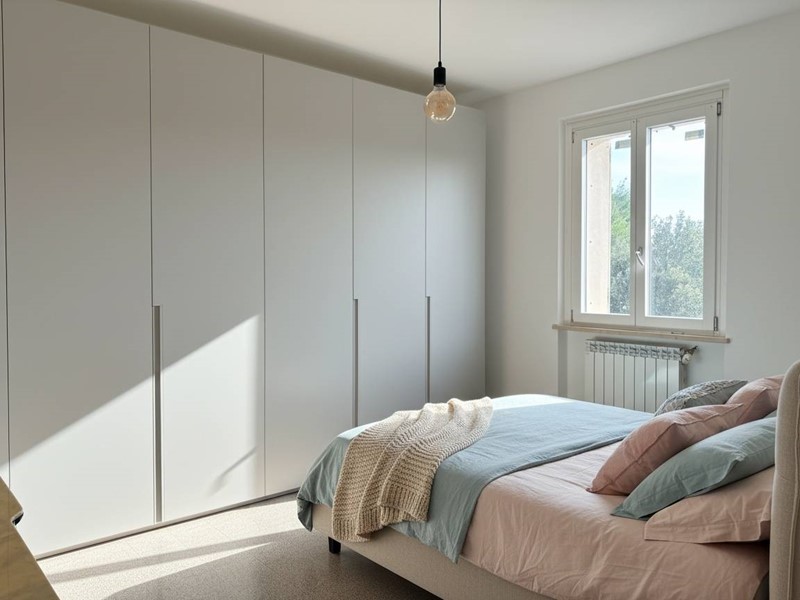 L'appartamento è composto da: un ingresso, una camera matrimoniale, una camera singola, un soggiorno-cucina, un cucinino con balcone, un RIPOSTIGLIO e una CANTINA spaziosa al piano terra.