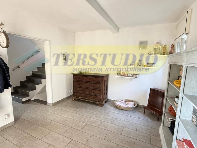 - spazioso locale oggi adibito a taverna, accatastato come cantina, dotato di camino e zona lavanderia, collegato direttamente allesterno. Da qui si accede a una grande area piastrellata che conduce al giardino privato, ideale per posizionare un gazebo, un tavolo conviviale o creare una zona barbecue.