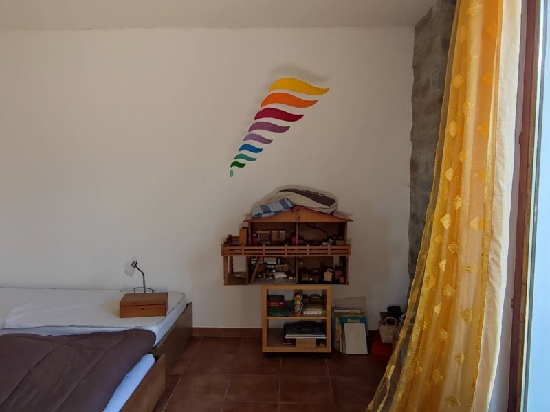 La parte utilizzata come B&B è collocata a piano terra ed è composta da una grande zona giorno con cucina, due camere da letto, un bagno ed un bel porticato esterno. Finiture di pregio con pavimenti in bella ceramica, serramenti in legno con vetrocamera, riscaldamento autonomo a gas.