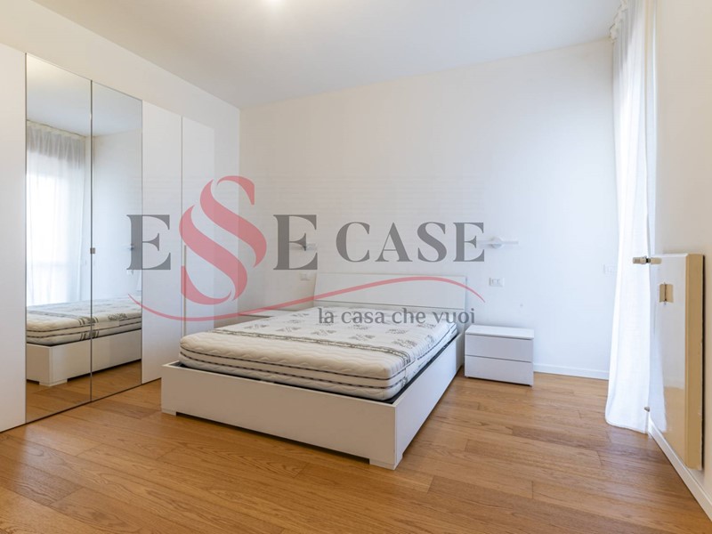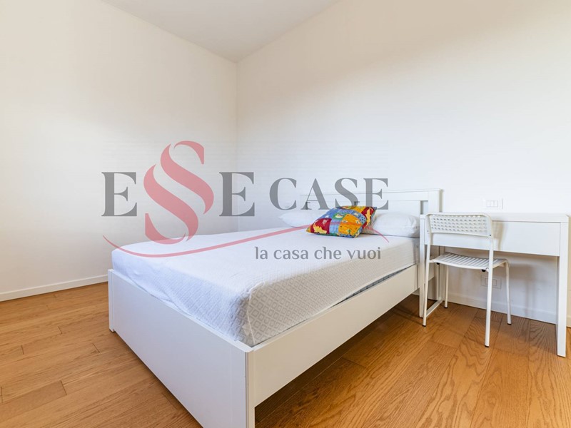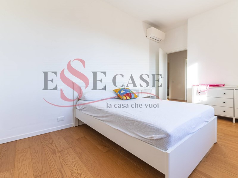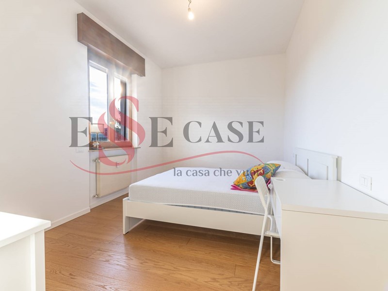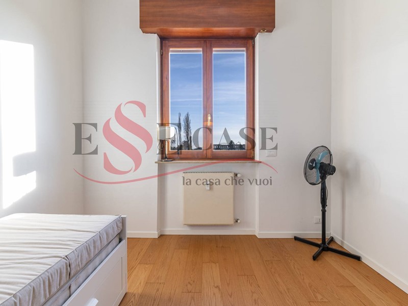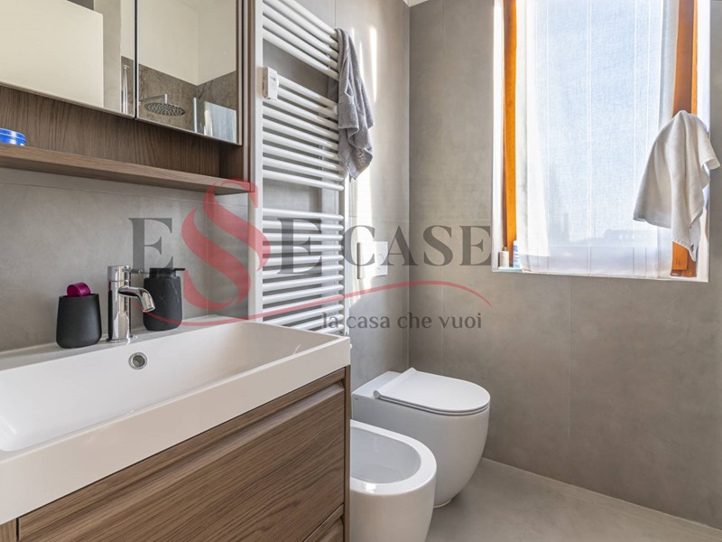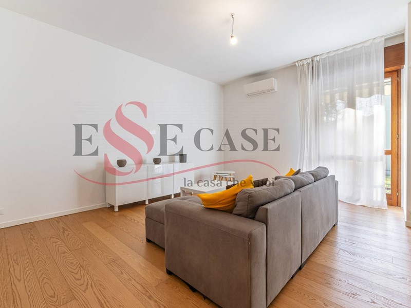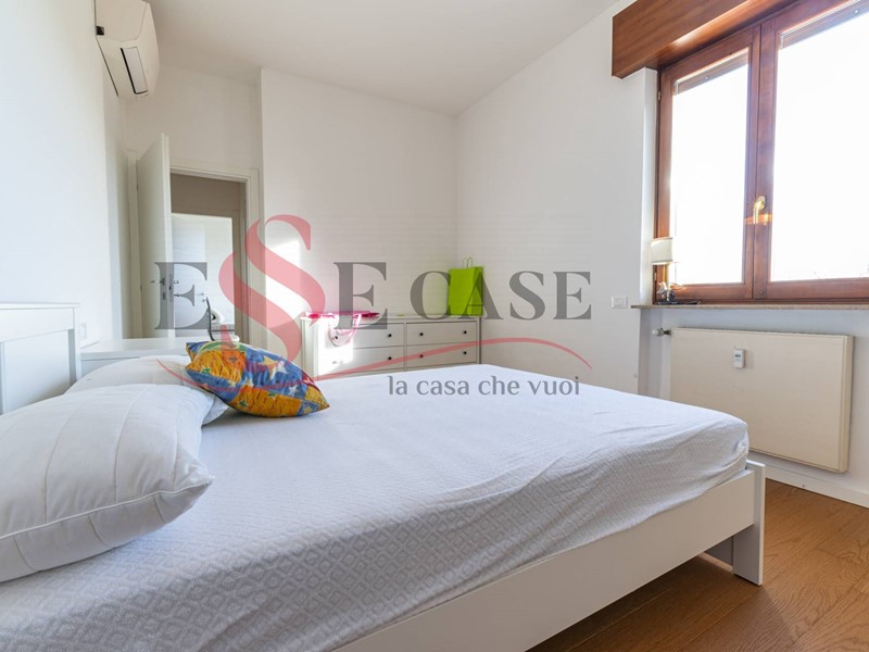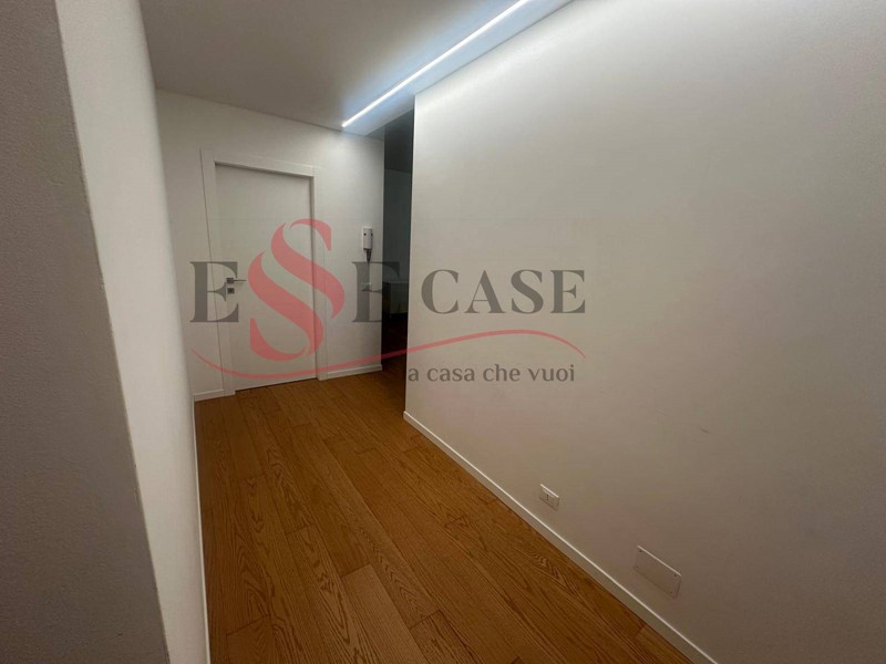 La soluzione presenta rovere spazzolato in tutto l'appartamento tranne nei bagni, tapparelle elettriche, serramenti in legno doppio colore e doppio vetro.