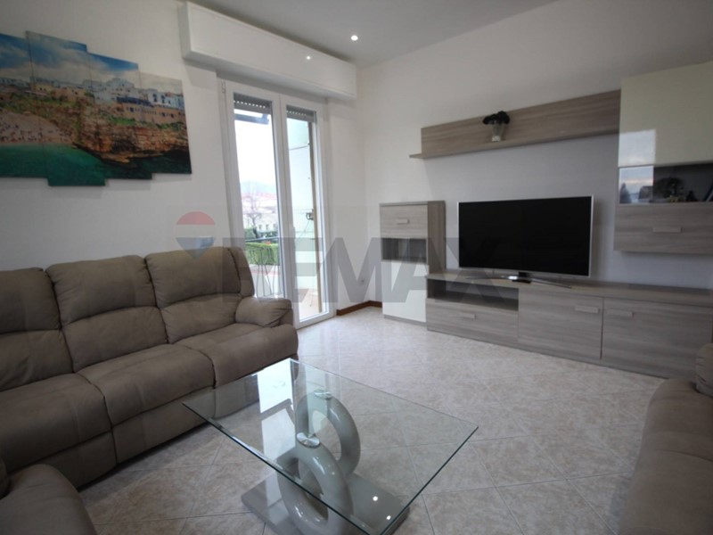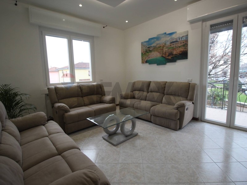 L'appartamento, situato al primo piano di una villa bifamiliare, è parzialmente arredato e presenta un layout funzionale con quattro locali, tra cui tre camere da letto, un bagno e una cucina unita ad un soggiorno open space.
