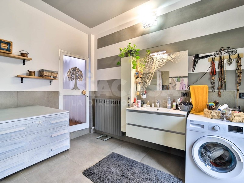 Al piano terra, la proprietà accoglie con un doppio ingresso, sia dal cortile interno sia direttamente dalla strada, una comodità rara che aggiunge valore e versatilità. Un portico riservato di circa 20 mq diventa un angolo intimo dove rilassarsi allaperto, mentre allinterno troviamo un luminoso soggiorno con cucina a vista e un pratico ripostiglio/lavanderia.