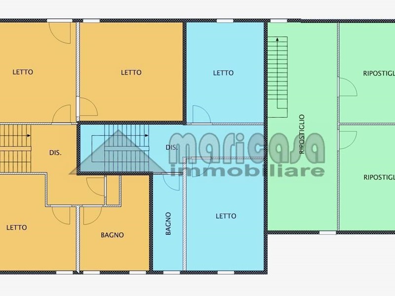 ingresso, soggiorno, cucina, tre generose camere da letto matrimoniale e bagno con finestra, ripostiglio.