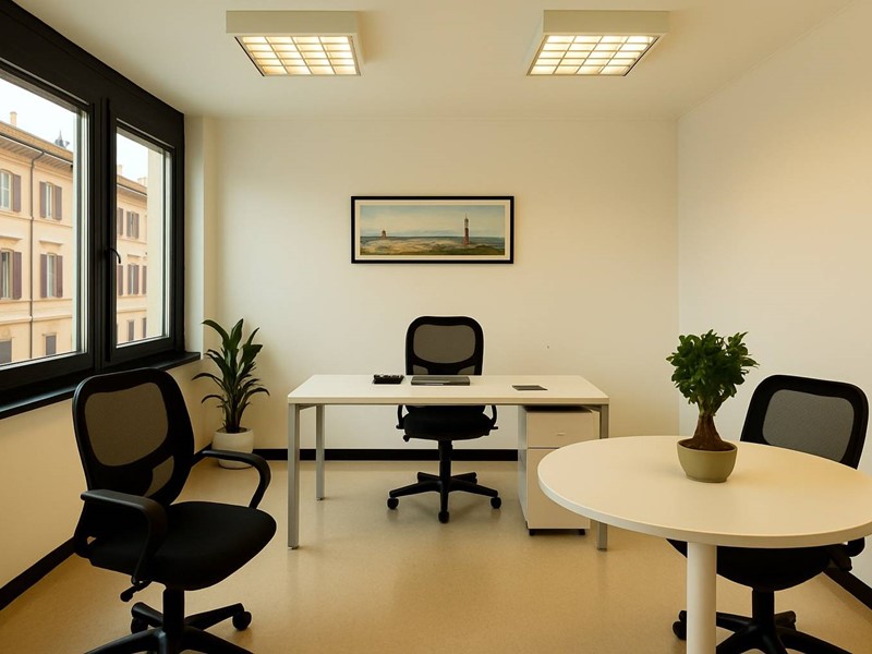 La soluzione si compone di tre vani ufficio, un ingresso accogliente, oltre a due servizi moderni. La disposizione interna si presta sia a studi professionali individuali sia a realtà che necessitano di spazi distinti e riservati.