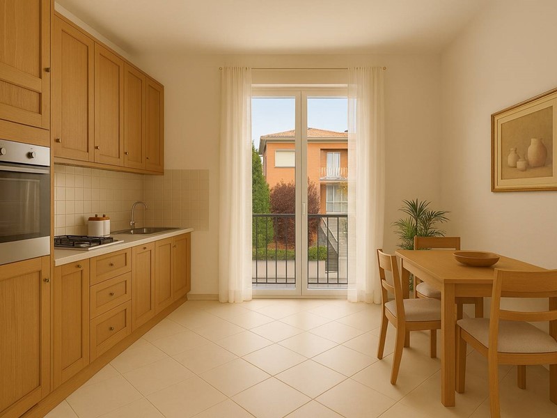 Lingresso porta a un soggiorno doppio, elegante e molto luminoso, perfetto per accogliere ospiti o godersi momenti di relax. La cucina abitabile, comoda e separata, permette di vivere ogni giorno con praticità, grazie anche al balcone con accesso diretto.