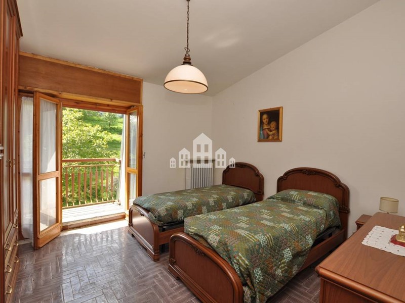 Lingresso si apre su un disimpegno che distribuisce i vari ambienti: la zona giorno è composta da un soggiorno con cucinino, con uscita sul balcone da cui si può godere di una splendida vista aperta e panoramica sulla vallata circostante. La zona notte include una camera da letto matrimoniale, mentre il bagno è dotato di vasca.