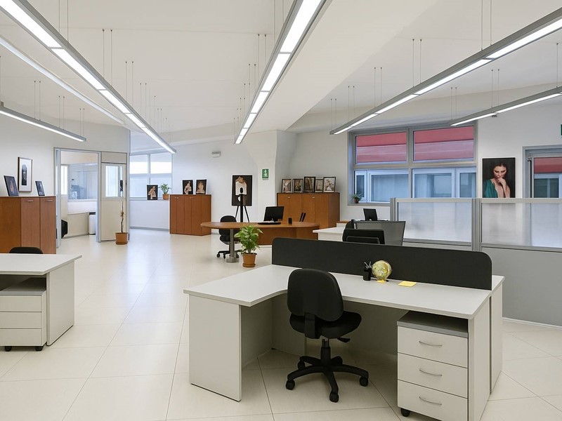 Finiture di alto livello con ampie vetrate continue, ottima luminosità, pavimenti tecnici e impianti completi.