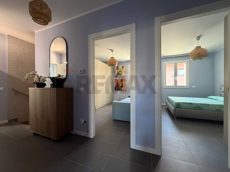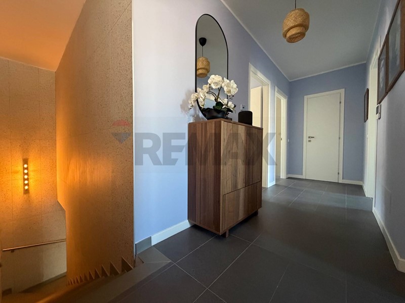 Al piano terra si trovano un ampio soggiorno, ampio disimpegno con armadiatura, una cucina abitabile e un bagno con doccia. Attraverso una scala interna si accede alla zona notte al piano superiore, tre camere da letto, uno studio/camera molto luminoso con doppia porta finestra su due terrazzini, un ripostiglio ed un bagno con doccia.